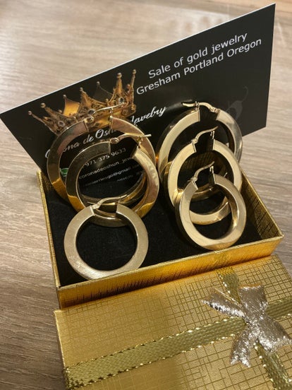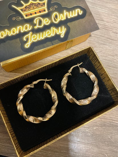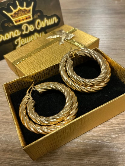TRÍO DE ARGOLLAS TORCIDAS DE GRAN TAMAÑO Y GROSOR 10K PRECIOS DE MAYOR A MENOR $575. $435. $295 PRECIO DEL TRÍO $1250