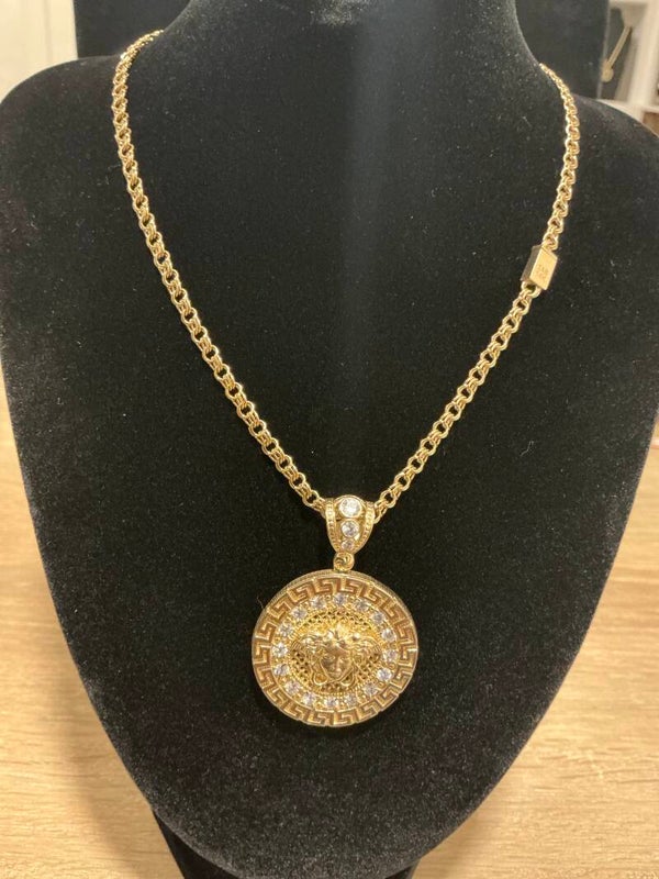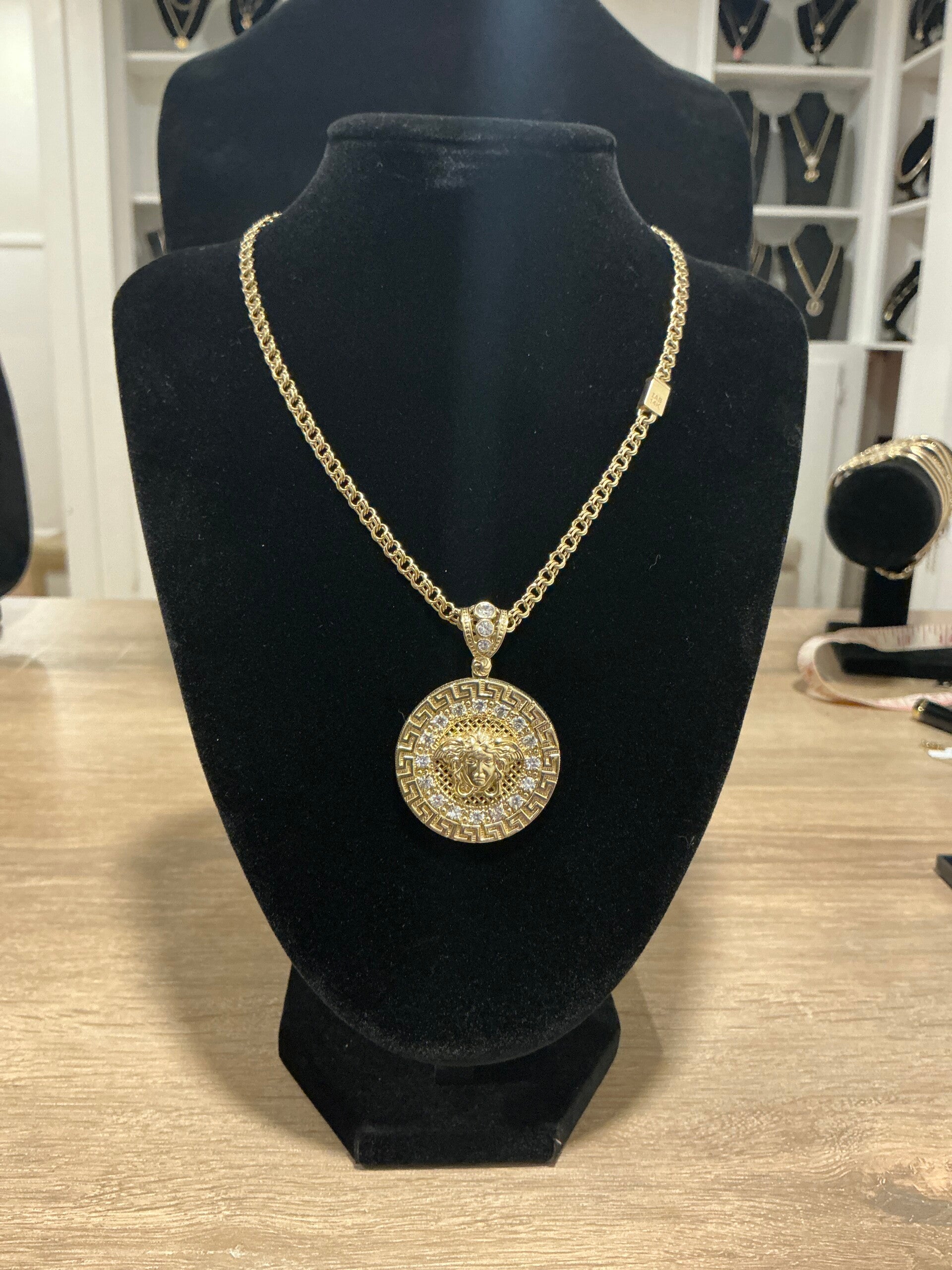 CADENA ESLABÓN CHINO 14K CON MEDALLA VERSACE