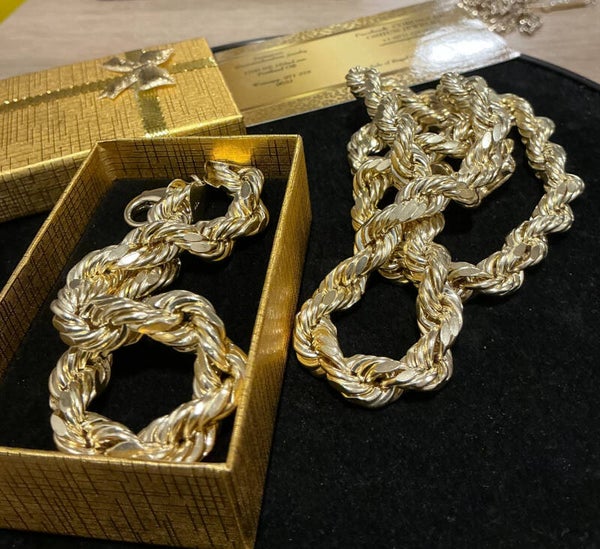 CADENA Y BRASALETE ROPE DE 10k GROSOR 10mm LARGO 22 INCH