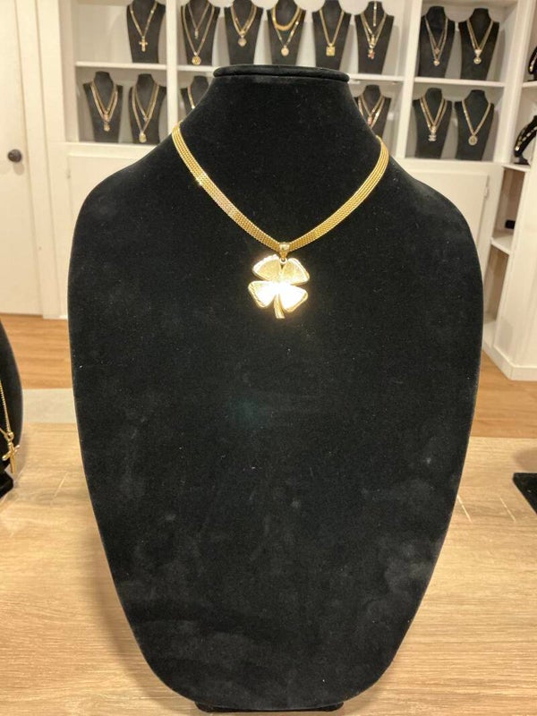 GARGANTILLA 14K ANCHO 9.5mm CON TRÉBOL DE LA SUERTE Y EL DINERO BIEN GRANDE SÓLIDO 10K