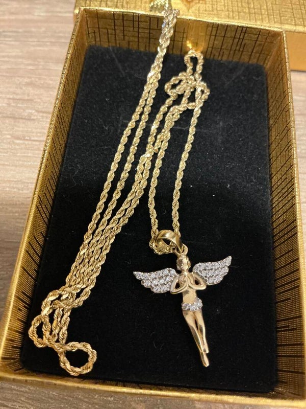 CADENA ROPE CON ÁNGEL TODO SÓLIDO 14K