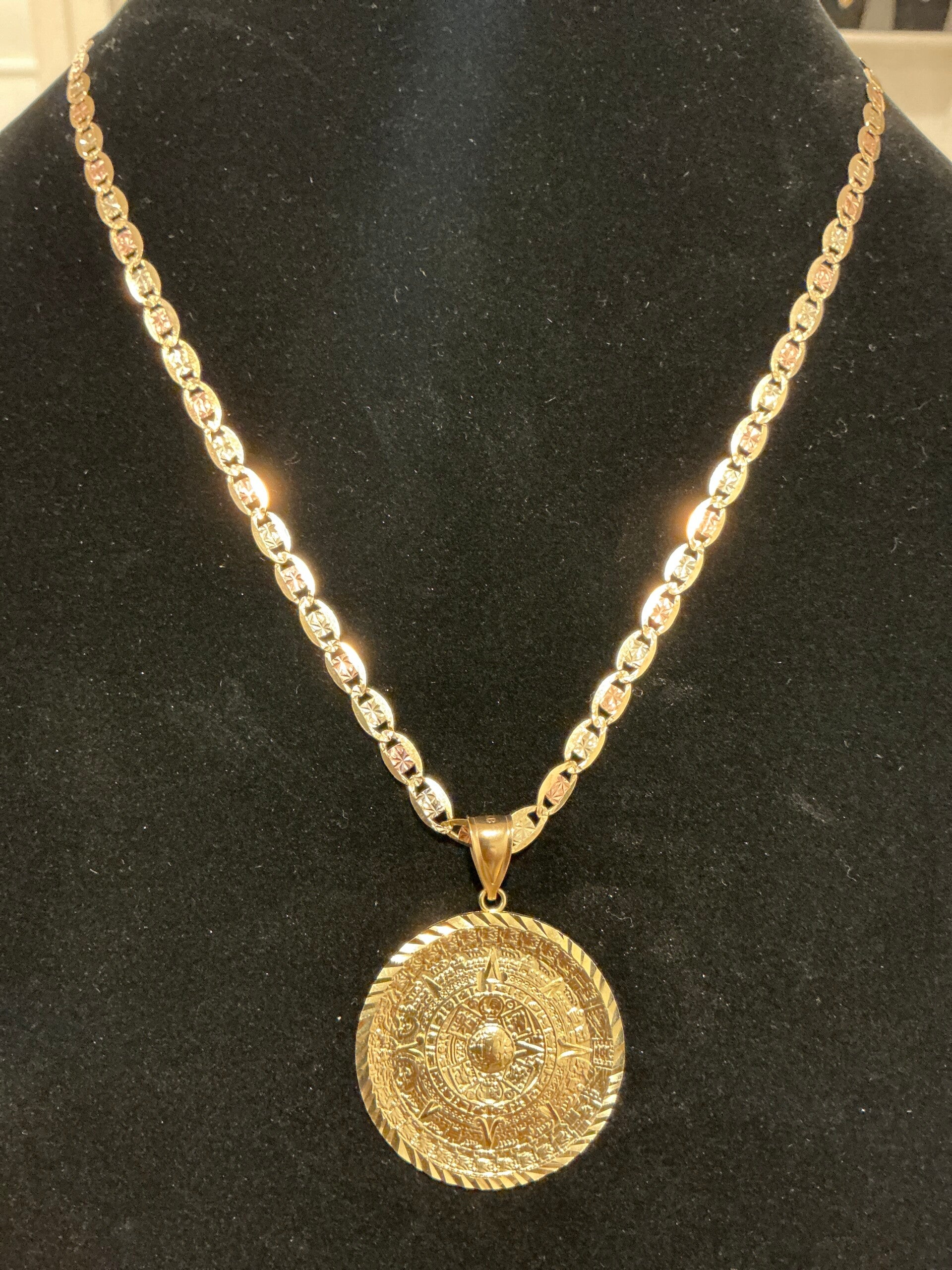 CADENA VALENTINO CON LOS 3 ORO GROSOR 6.5 mm LARGO 22 INCH MEDALLA DIÁMETRO 40mm