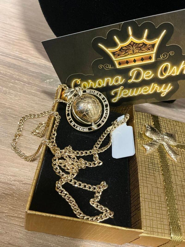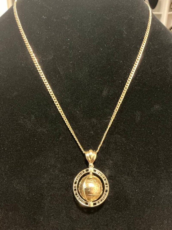 CADENA CUBANA TRADICIONAL 22 INCH DE LARGO 3.8mm DE GROSOR Y UN HERMOSO DIJE DEL MUNDO QUE DA VUELTAS SOBRE SU EJE