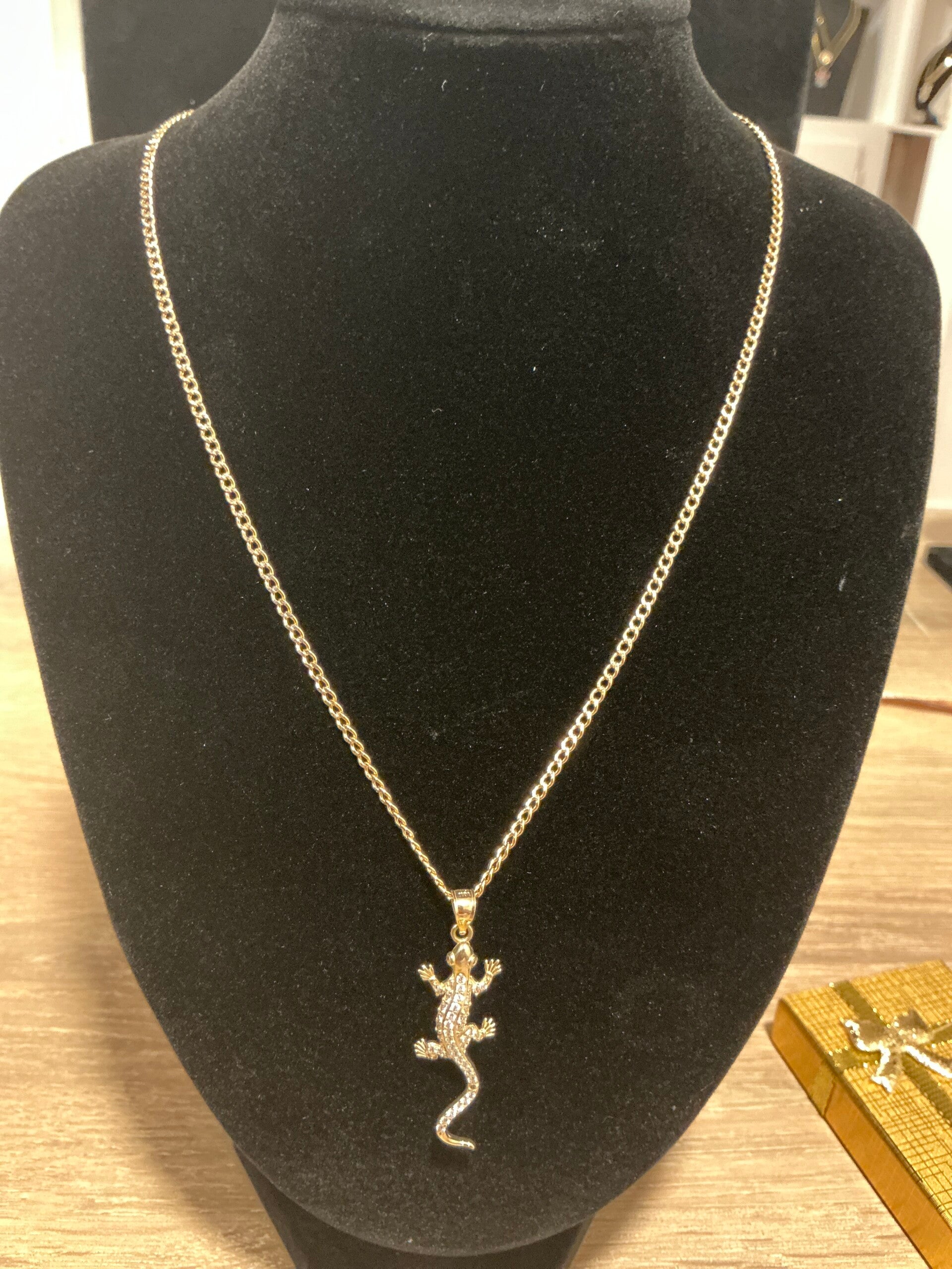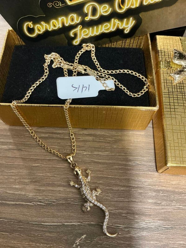 CADENA CUBANA 14k CON DIJE DE SALAMANDRA DE LA SUERTE EN 10K