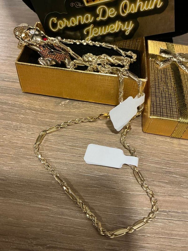 SET COMPLETO DE CADENA de 22 INCH DE LARGO 4.5 mm DE GROSOR TODO 10K CON DIJE SÓLIDO DE PEDRO PICA PIEDRA Y MANILLA MILANO TAMBIÉN CON EL MISMO GROSOR 7.75 INCH