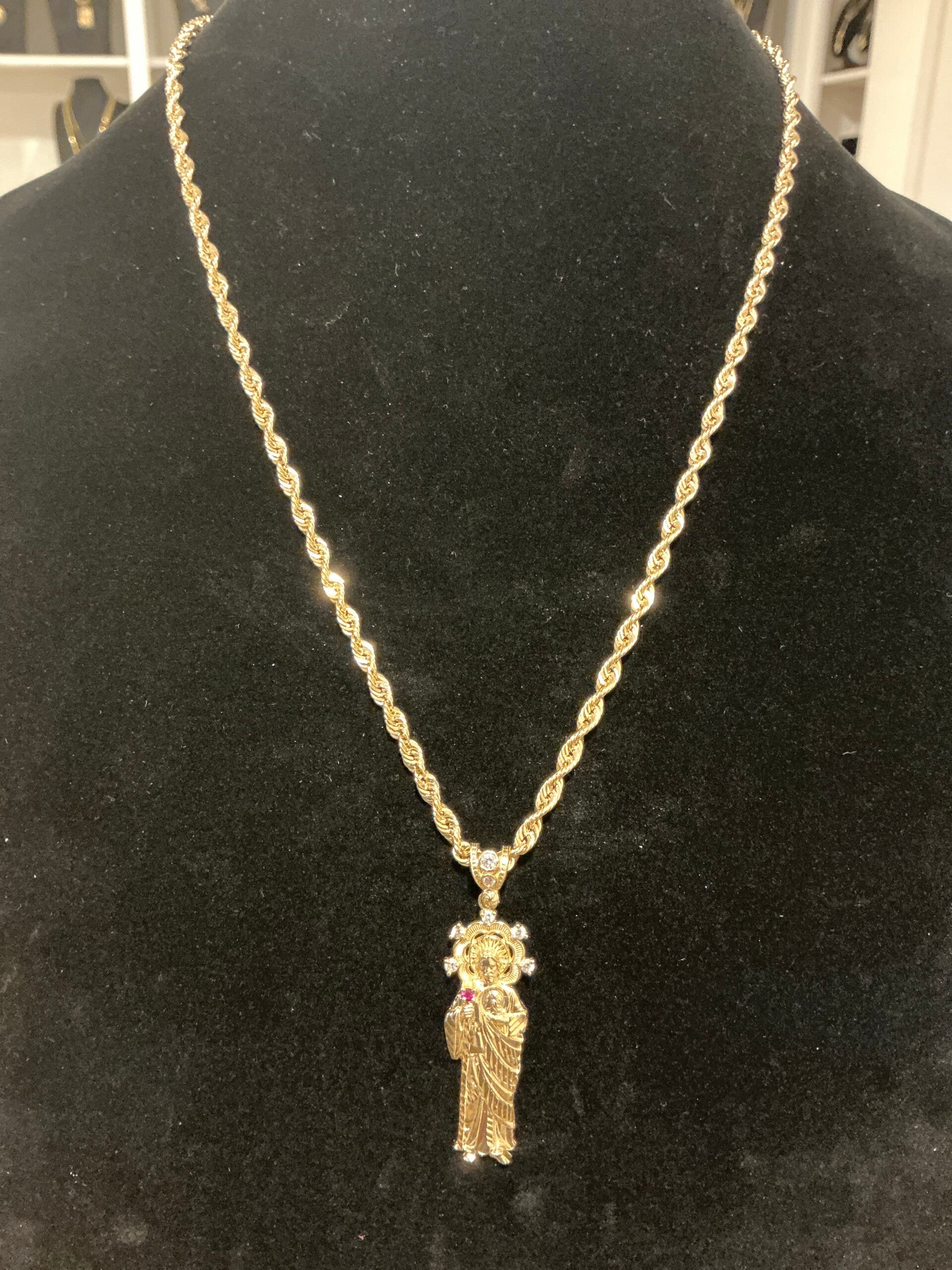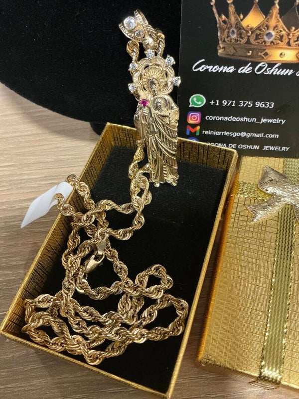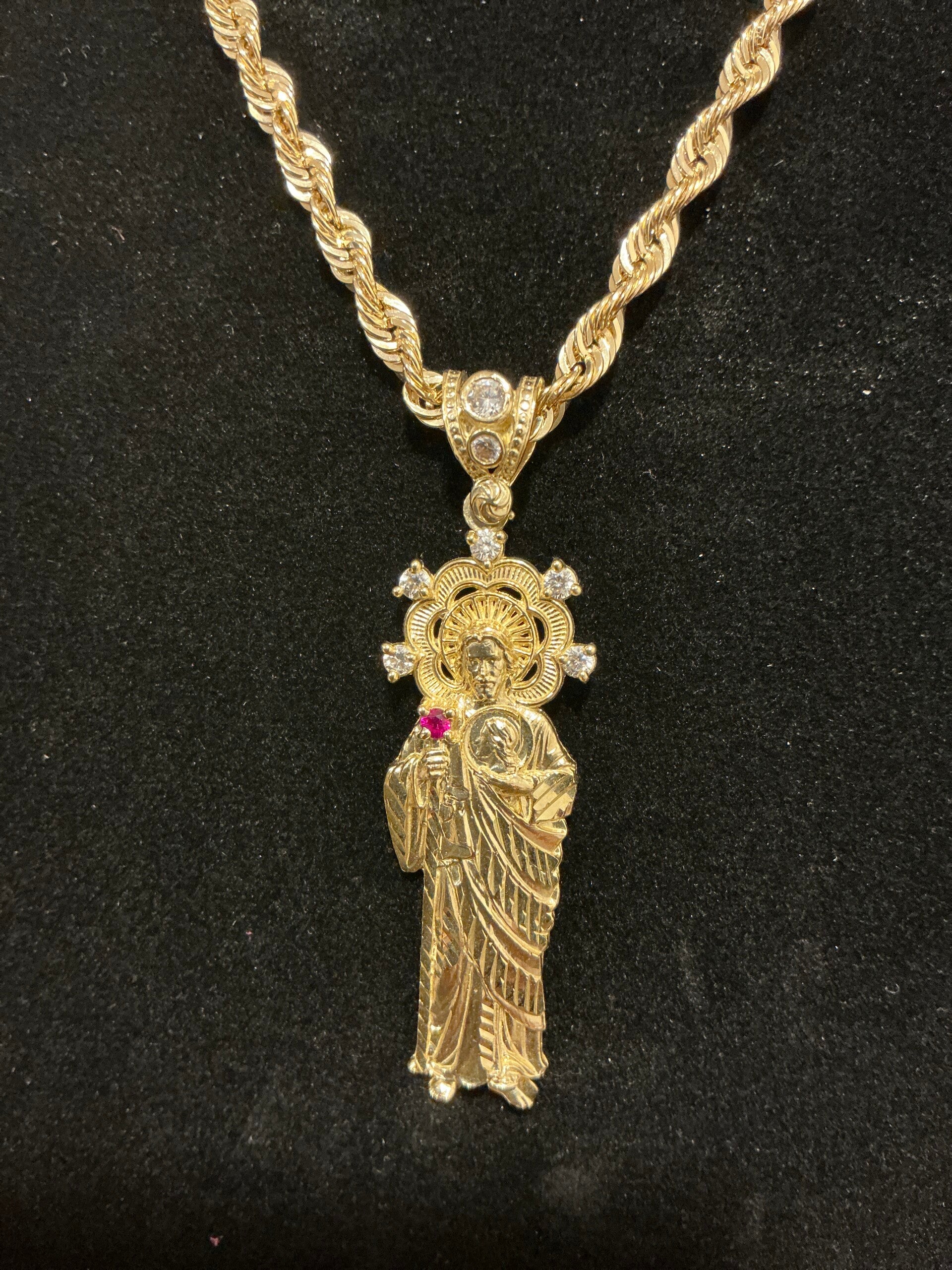 CADENA ROPE DE 4.8 mm DE GROSOR 22 INCH DE LARGO CON UN DIJE DE SAN JUDAS DE 56 mm DE ALTO