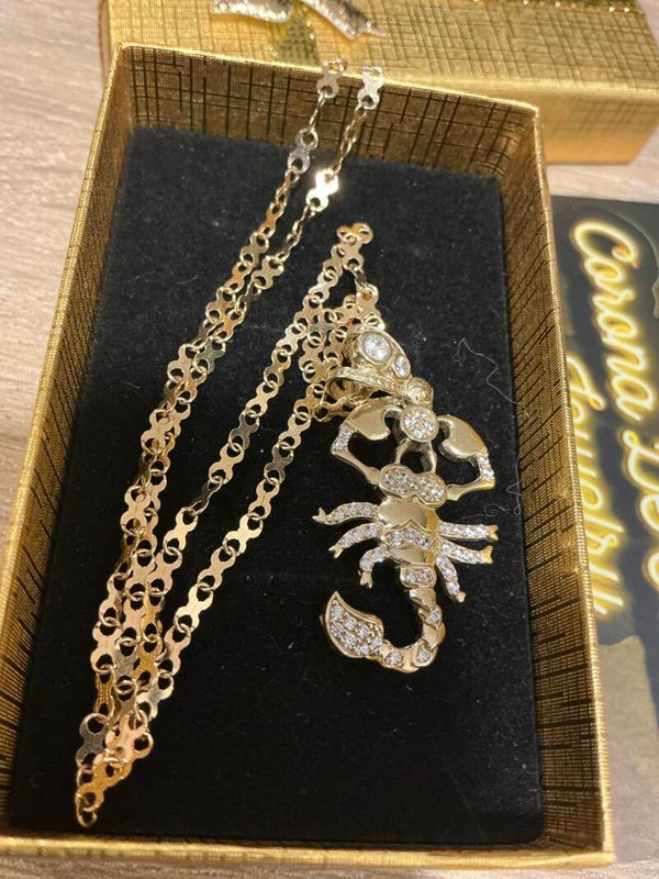 CADENA DE 3.5mm de GROSOR 16 INCH Y UN HERMOSO ESCORPIÓN SÓLIDO DIAMANTADO