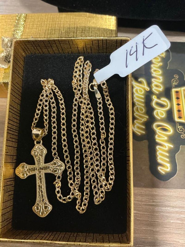 CADENA 14K DE 2.8mm 22 INCH CON CRUZ NUGGET 36mm de ALTO CRUZ 10K