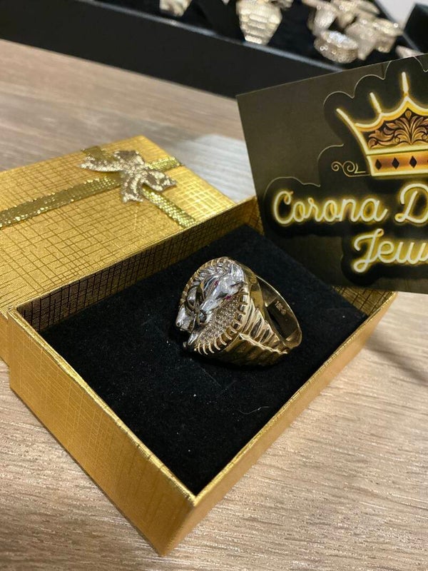 ANILLO UNISEX 10K SIZE 11 CON CABALLO EN ORO BLANCO AL RELIEVE