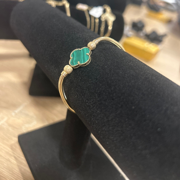 PULSERA VAN CLEEF 14K ELÁSTICA CON HERMOSA PIEDRA AMAZONITA.