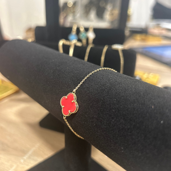 PULSERA VAN CLEEF 10K CON HERMOSA HASPER ROJO.