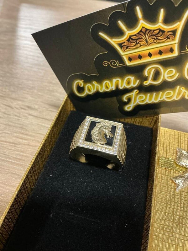 ANOLLO 10K SÓLIDO CON CABALLO Y ÓNIX DE FONDO SIZE 10.5