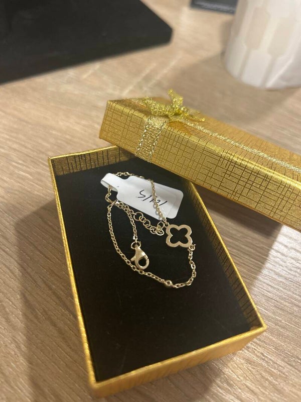 PULSERA ESLABÓN ROLO 14K CON TRÉBOL Y BRILLANTE, 7.3 INCH REGULABLE 3 MM.