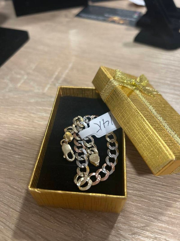 PULSERA 14K ESLABÓN CORTE BRILLO DE TRES ORO SÓLIDO,8 INCH 6 MM.