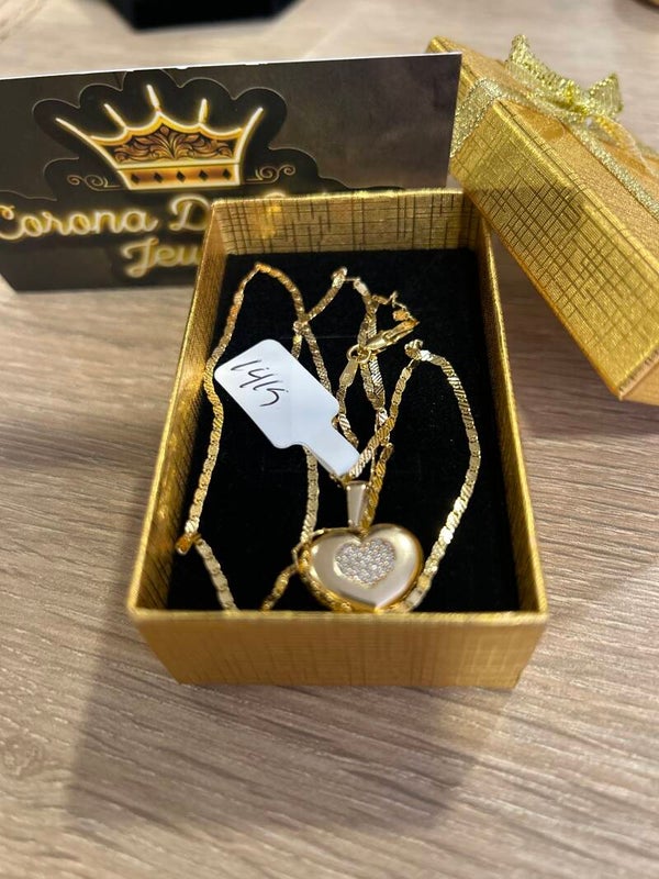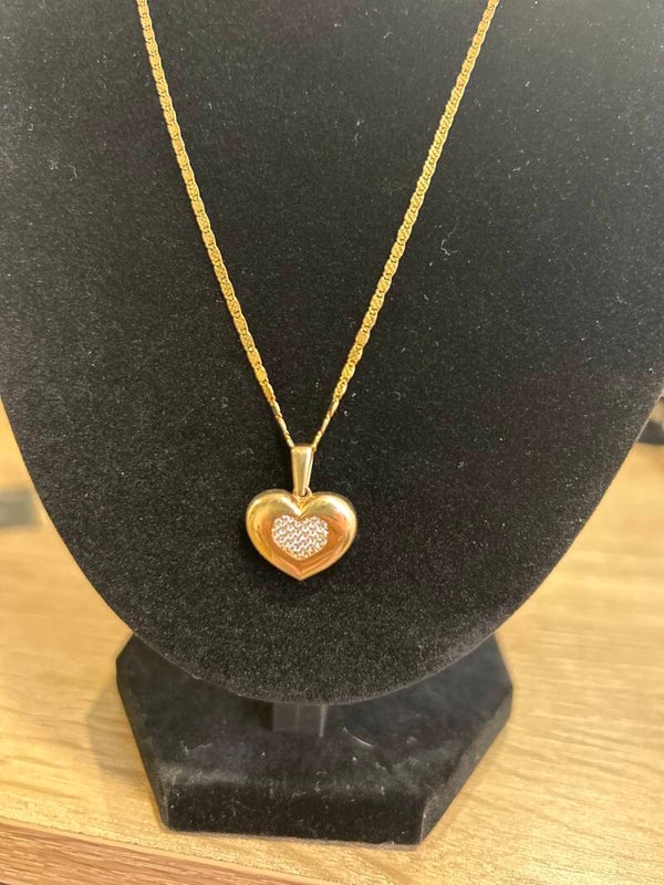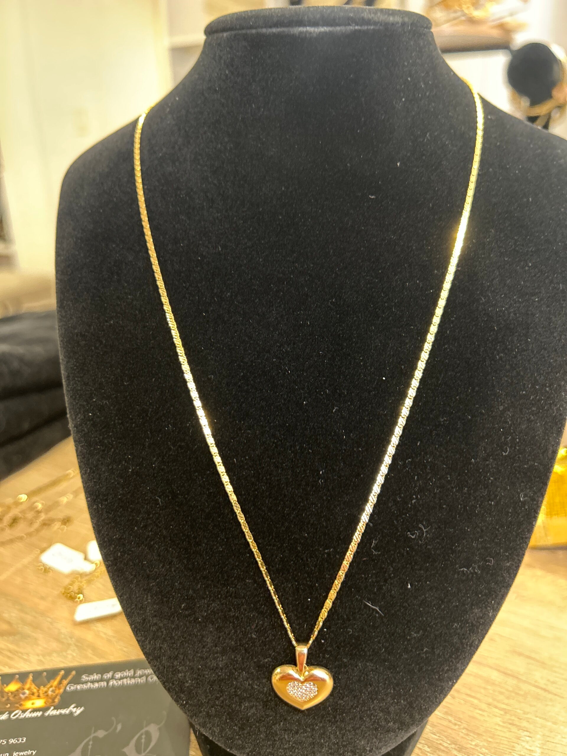 CADENA 14K 20 INCH CON CORAZÓN 14K CON ZIRCONIAS.