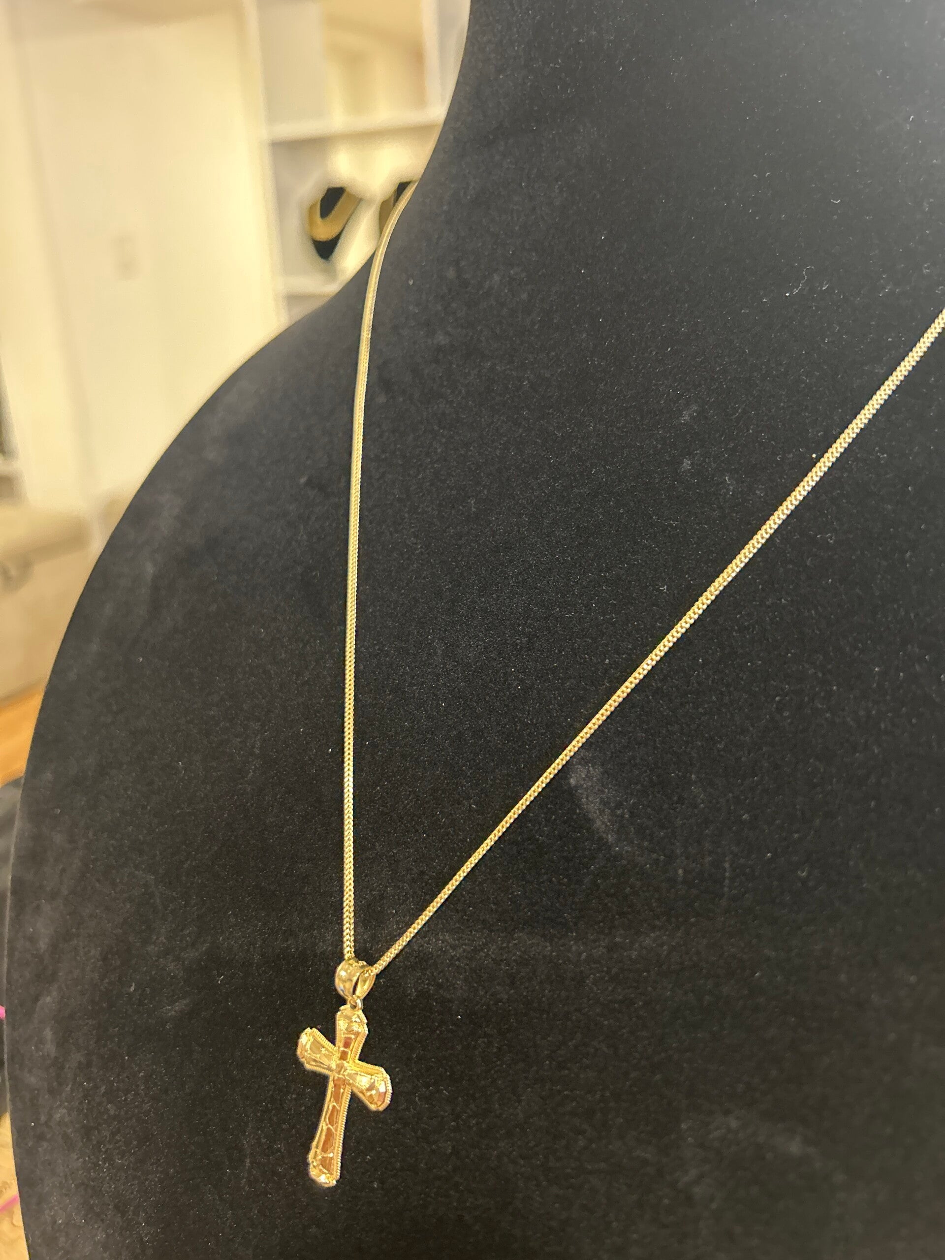 CADENA 10K CON ESLABÓN FRANCO 22.5 INCH CON CRUCIFIJO 10K.