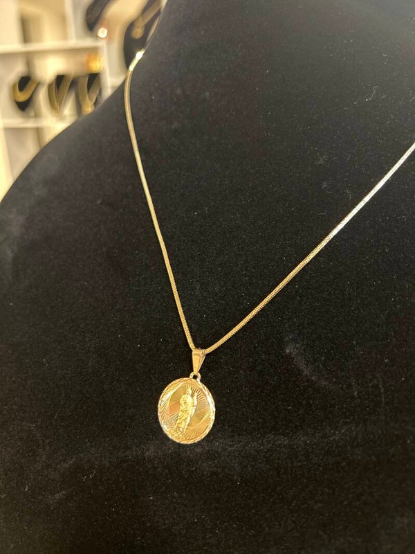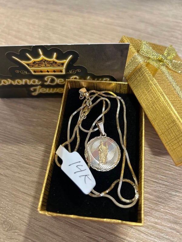 CADENA 14K ESLABÓN FRANCO 22 INCH CON MEDALLA 14K DE TRES ORO.