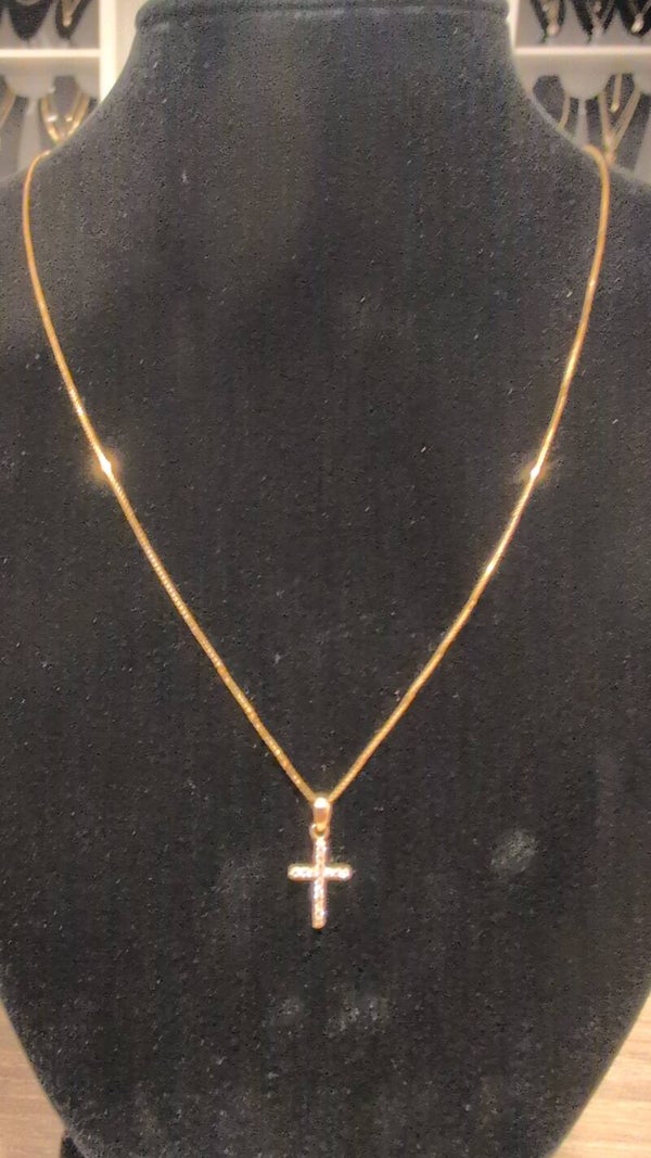CADENA FINA SOLIDA 14K DIJE CRUZ
