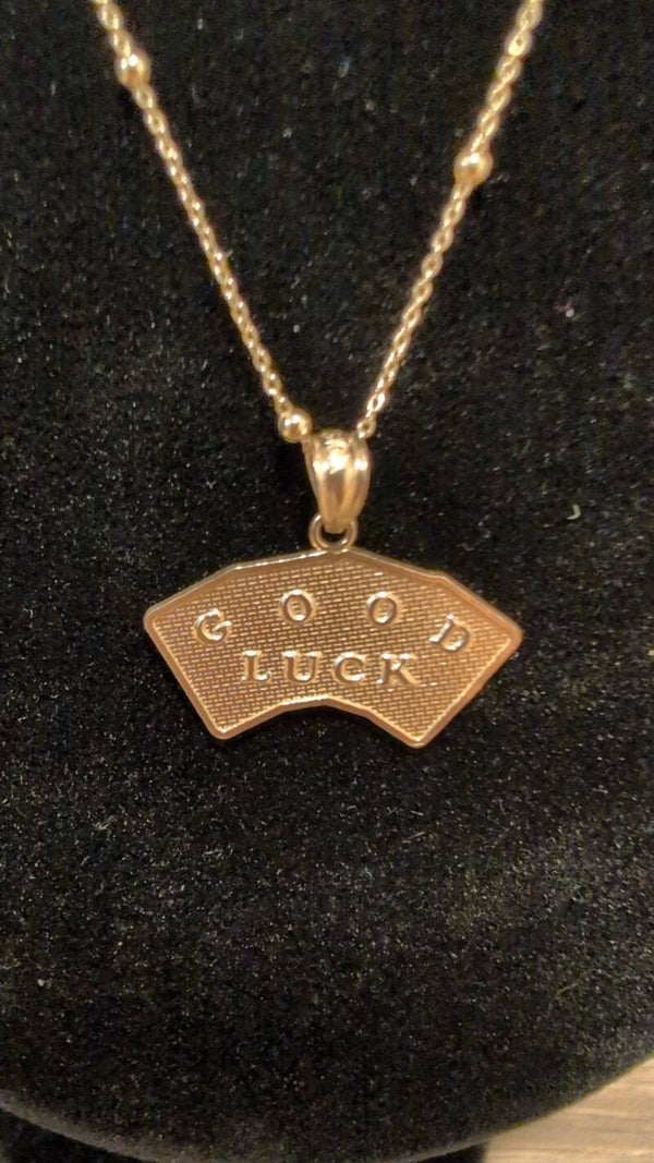 CADENA CON ESLABÓN DE BARRIL CON DIJE DE 3 CARTAS 10K